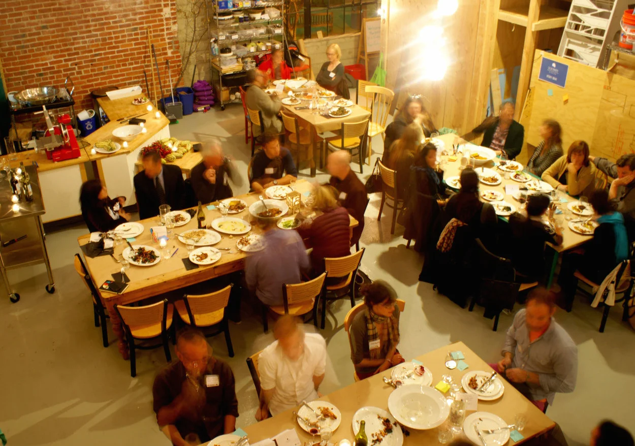 First Possibility Potluck in an empty storefront– A dinner party meets design charrette for neighborhood development.